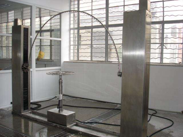 擺管淋雨試驗箱為大型敞開式設備,需安裝在特設的實驗室內對產品進行人工模擬淋雨試驗,設備可以用來考核和確定電工、電子產品外殼和密封件在水試驗后或在試驗期間能否保證設備和元件良好的工作性能。設備能完全模擬外界淋雨環境,充分再現外界淋雨環境對產品所造成的影響。